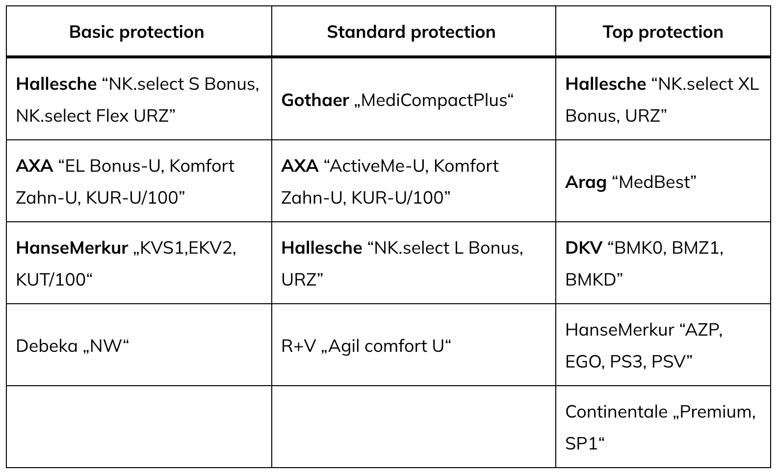 Each of the rating agencies considered several factors when analyzing the private health insurance plans in Germany. They even had minimum criteria that the private health insurance tariff must fulfill to achieve the top rating. Best private health insurance COMPANIES